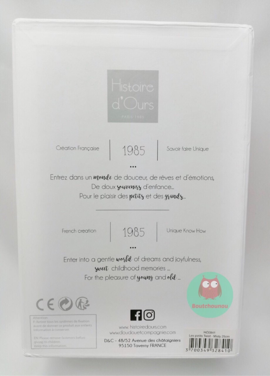DOUDOU CHIEN CANICHE ''ROXANE'' BLANC ROSE LES PETITS TWIST HISTOIRE D'OURS Collection LES PETITS TWIST