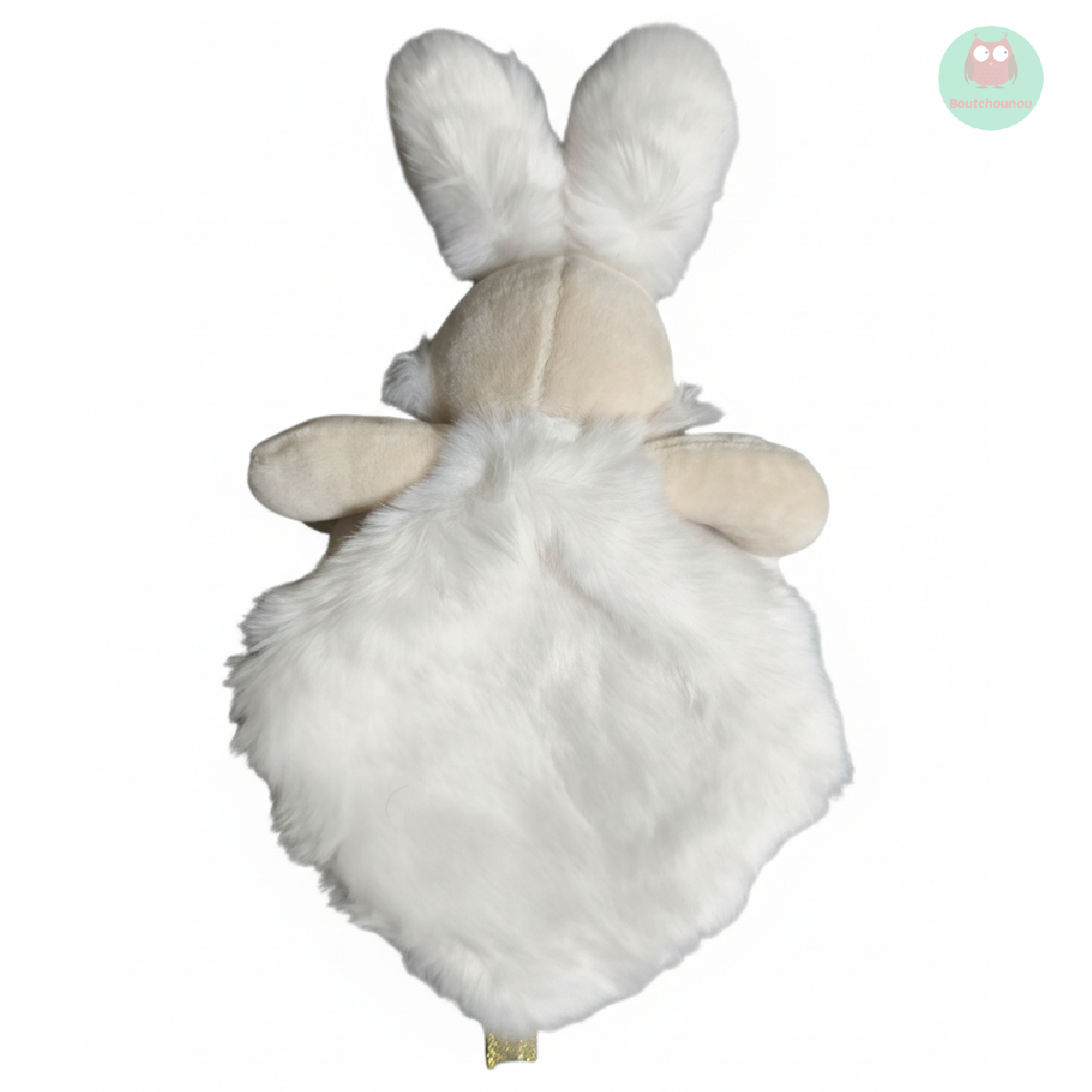 Superbe doudou lapin rose et saumon, très doux et attachant, bébé pourra le manipuler très facilement afin de l'emporter avec lui partout.