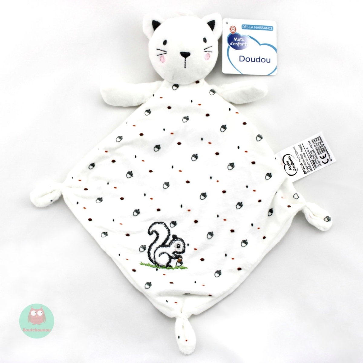 Doudou plat écureuil, très mignon et facile à maintenir par bébé.