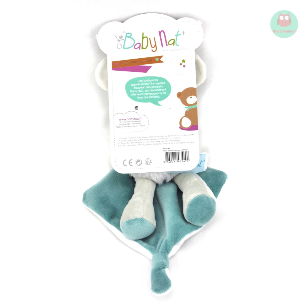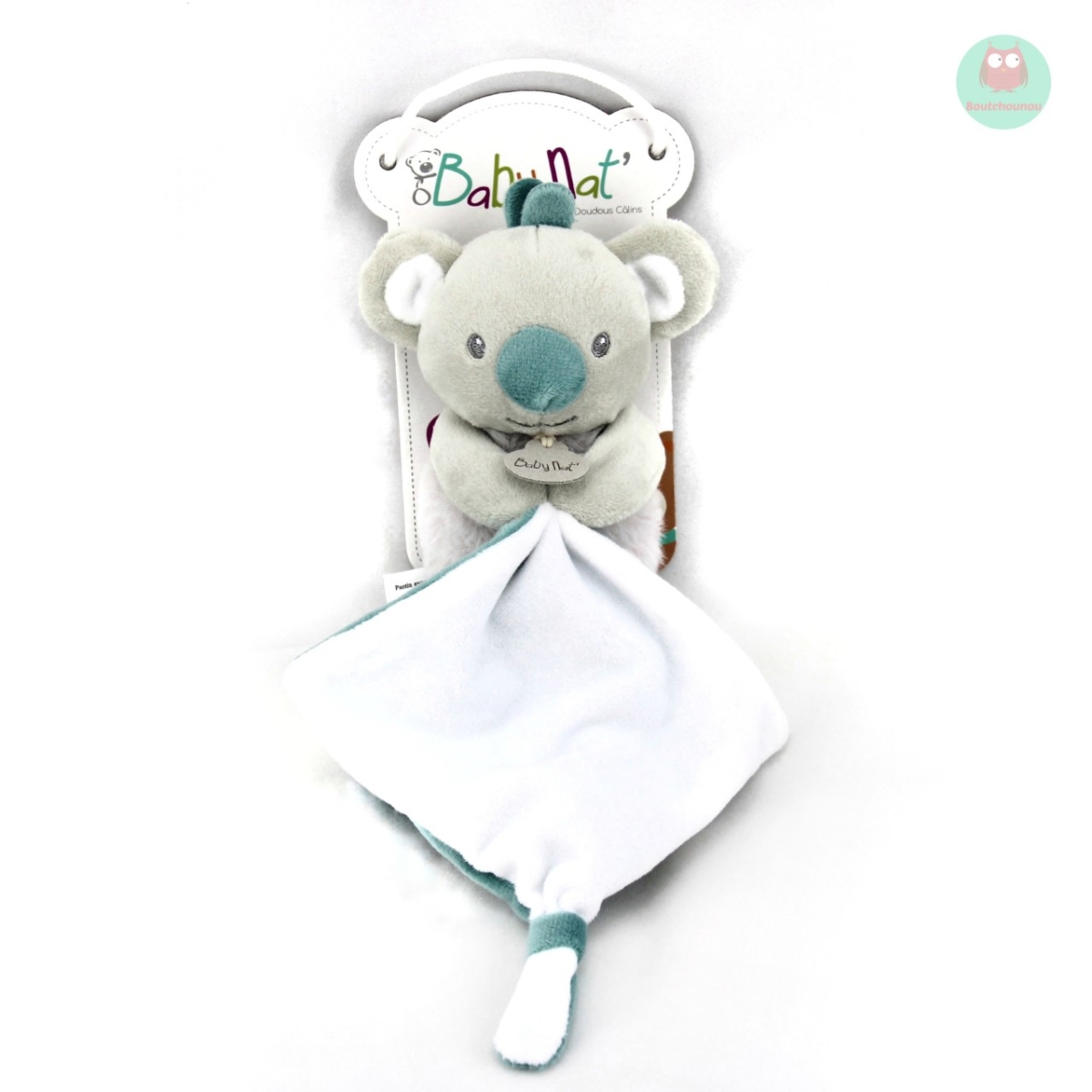 Doudou koala avec son mouchoir, tout doux, facile à attraper par bébé, et qui pourra l'accompagner partout.