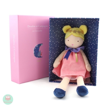 Superbe poupée chiffon (+/- 30 cm), Demoiselle Luna, ravissante dans sa robe rose.