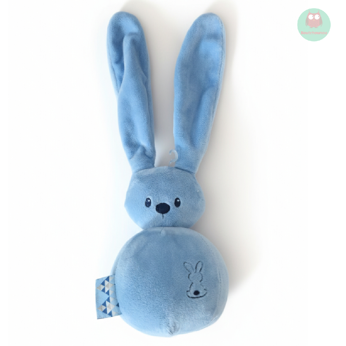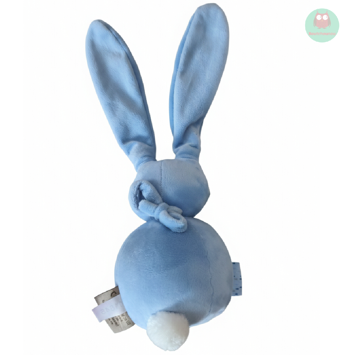 Doudou boule lapin bleu, musical (tirer sur sa queue pompon).
